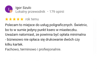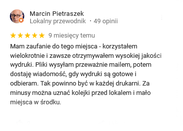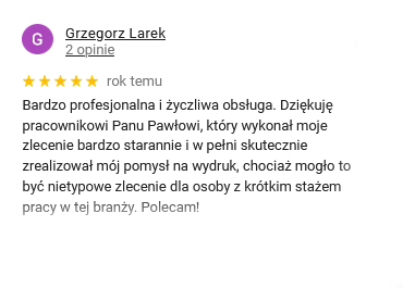 Jesteśmy pewnym partnerem biznesowym zawsze terminowo dostarczając wydruki najwyższej jakości.